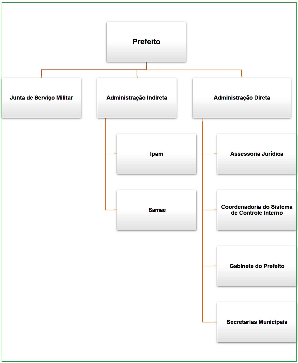 A Administração Direta compreende o exercício das atividades da administração municipal efetivadas diretamente pelas unidades organizacionais específicas, assim agrupadas: